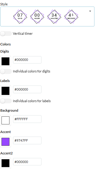 You can select the timer style that you want to customise in the style dropdown.