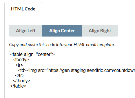 You can choose whether to align your timer to the left, center or to the right by selecting the option where the HTML code for your timer is: